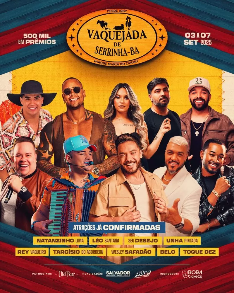 Em breve mais atrações serão confirmadas, para mais informações acesse @ssaproducoes @pida @vaquejadadeserrinhaoficial.