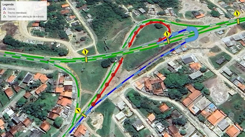 Com a interrupção do fluxo de veículos no ponto da BA-882, uma rota alternativa foi criada com a construção de um desvio ao lado do túnel. A fim de melhorar o trânsito no trecho, que se encontra sinalizado, foram implantados quatro redutores de velocidade (quebra-molas) e um retorno na BA-001. A equipe técnica da Seinfra, em conjunto com o Batalhão de Policiamento Rodoviário (BPRv), estão dando o apoio necessário no local.