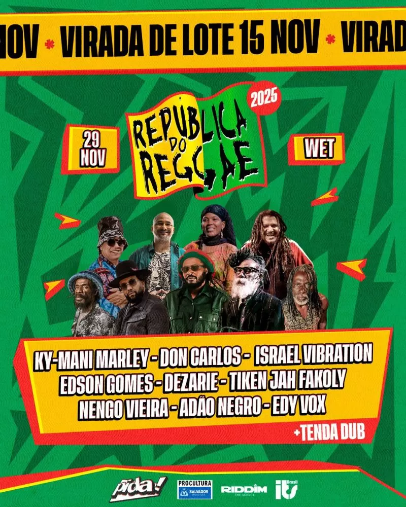A República do Reggae – um dos maiores festivais de reggae da América Latina acaba de anunciar virada de lote no dia 15 novembro! A edição de 2025 acontecerá no dia 29 de novembro, no Wet Eventos e vai oferecer mais uma noite inesquecível para os amantes da cultura jamaicana.